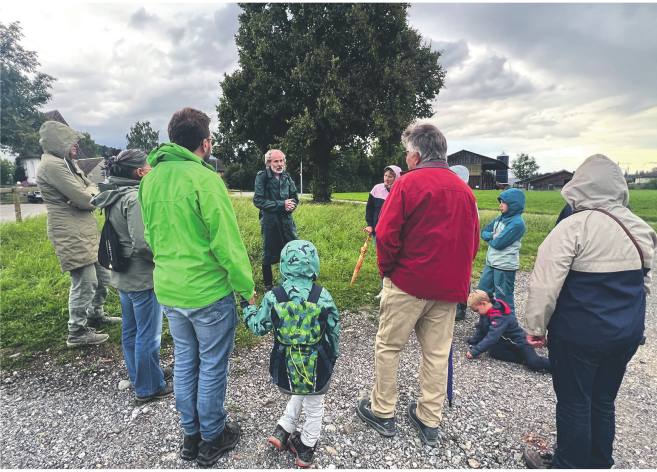Thomas Haller gab am Treffpunkt beim Kloster Tänikon zunächst spannend und anschaulich eine kurze Einführung in die Fledermauskunde. Er erklärte, welche Arten es in der Schweiz gibt, wie sie leben und welchen positiven Einfluss sie unter anderem als Schädlingsbekämpfer auf das Ökosystem haben.