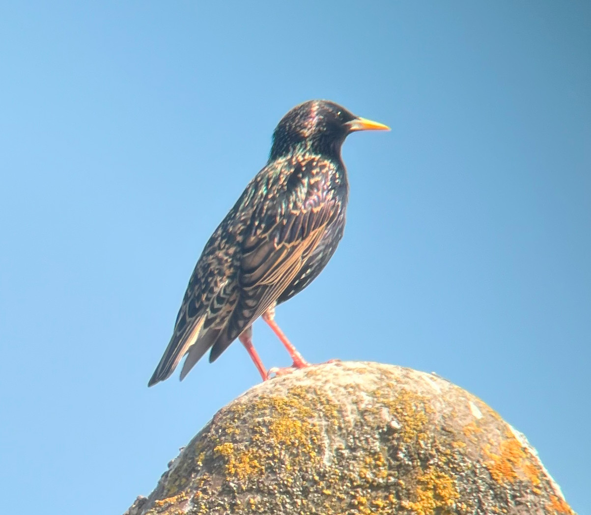 Danach ging es nach draussen. Mit Ferngläsern und meinem Spektiv ausgerüstet schauten wir, welche Vögel wir beim Schulhaus beobachten können. Auf der einen Seite kreiste ein Schwarm Strassentauben die einer Nachbarin gehören. Auf der anderen Seite steht ein Bauernhof, der von Hausrotschwänzen und Staren bewohnt ist. Hin und wieder tummelten sich auf den Dächern Elstern oder Rabenkrähen. Besonders die Stare konnten wir zeitweise mit dem Spektiv sehr gut beobachten. Einer sass recht lange auf dem Dachgiebel und wir konnten ihn beim Singen beobachten.
