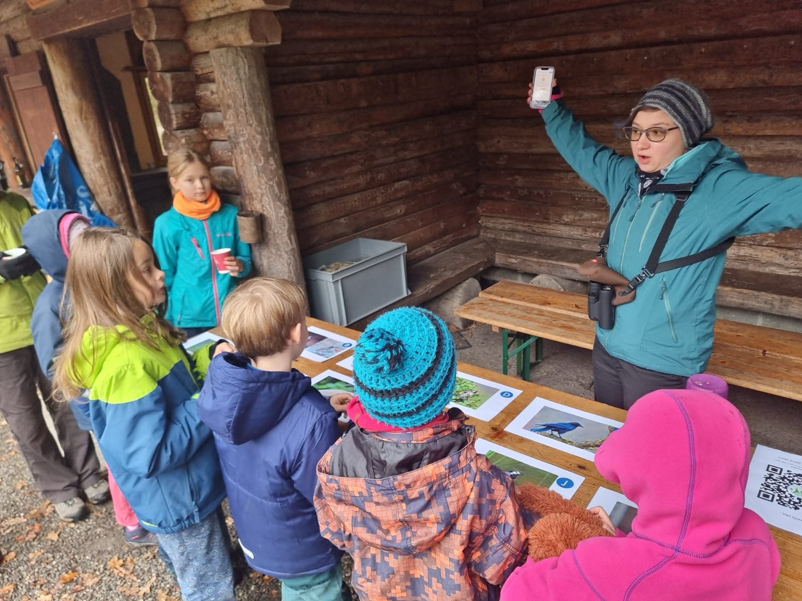 Während die Kinder auf das Essen warteten, spielte Nadja mit ihnen noch ihr selbst zusammengestelltes Vogelstimmenquiz mit 11 Vögel, die bei uns im Dorf anzutreffen sind. Dieses Quiz bieten wir auch auf unserer Webseite unter Projekte an.
